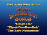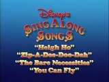 Jiminy Cricket: You can enjoy all these other Disney Sing-Alongs. "Heigh Ho", "Zip-A-Dee-Doo-Dah", "The Bare Necessities", and "You Can Fly."