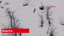 Karlı dağlarda vaşak dronla görüntülendi