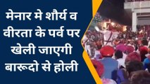 मेनार गांव की होली अपने आप में अनूठी है, क्योंकि यहां होली रंग और फूलों की नहीं, बल्कि पटाखे और गोला-बारूद की होती है.
