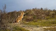 Un petit Hapalemur bien haut perché qui marque son territoire avec ses bras. C'était lors d'une visite du Parc National de Ranomafana à Madagascar en mai 2009.