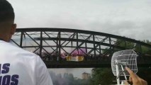 El barco del ascenso, a su paso por el Puente de Hierro
