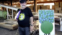 Un artiste dépose un oeuvre symbolique d'arbre à la scierie Duclaux