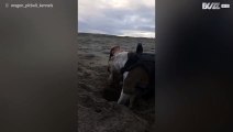 Hund reagerar hysteriskt på torrt gräs
