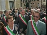 Roma. Palazzo Chigi. Proteta dei Sindaci Calabri di fronte a Palazzo Chigi per ricordare che la situazione del relitto rinvenuto è ancora ferma; nei confronti della cosiddetta nave dei veleni non è stata presa alcuna dedcisione da parte del Governo. ''Vogliamo sapere se ci sono questi rifiuti tossici. Non possiamo piu' vivere con questo terrore''. E' quanto ha dichiarato Aurelio Garritano" e ancora "''Se il Governo non ci manda i soldi per bonificare - ha aggiunto Garritano - deputati e senatori calabresi si devono dimettere perche' evidentemente non sono capaci di farsi sentire. Altrimenti occupiamo la ferrovia, le strade e le autostrade. Ma non possiamo continuare cosi', il Governo deve intervenire'".