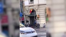 Twitter: Un catalán intenta retirar una bandera de España de una farola sin demasiado éxito