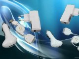 3-in-1 combination charger suitable for Apple iPods with Dock connector. Includes a USB charger for computer or adapter for cars 12V cigarette lighter and a wall socket adapter.