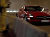 Publicité Mercedes pour la SLS AMG qui roule pendant quelques secondes au plafond d'un tunnel.