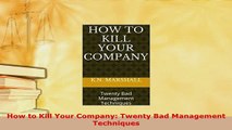 PDF How to Kill Your Company Twenty Bad Management Techniques Read Full Ebook