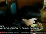 Por vía marítima, el ejército chileno entrega ayuda a la localidad costera de Pelluhe, que fue devastada por el maremoto posterior al sismo del 27 de febrero. Aún se buscan cadáveres y existe incertidumbre sobre el futuro del pueblo, que vivía del turismo y el cultivo de fresas. teleSUR