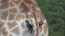 Quand un oiseau se régale en mangeant sur l'arrière train d'une giraffe...