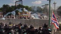 Thai security forces used tear gas and water cannons Friday as thousands of "Red Shirt" protesters stormed a television station to try to put an anti-government channel back on air.Duration: 01:07