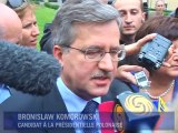 Les Polonais votent dimanche 4 juillet au second tour de la présidentielle qui oppose dans un duel serré le candidat libéral Bronislaw Komorowski au conservateur Jaroslaw Kaczynski, frère jumeau du président mort en avril dans un accident d'avion en Russie.Durée: 1min09
