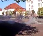 Ce voleur stupide tente d’exploser la porte vitrée d’une boutique alors que la porte est ouverte