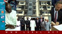 De nuit extérieur immeuble - arrivée officielles (DS) - POMPIDOU accueilli dans le hall M. PISANI - l'inscription commémorative - les installations de l'immeuble - la chaufferie - le répartiteur téléphonique - les bureaux - mécanographes au travail - installations médicales - la cantine - M. POMPIDOU PA profil puis GP pendant son allocution.