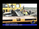 Dic 2008 - Notiziario Amica9 Tv | BISCEGLIE CORATO Quattro persone morte e due feriti gravi in un incidente stradale avvenuto sulla Corato-Bisceglie. Un disperso nel mare in tempesta del Salento. Allarme burrasca su tutto l'Adriatico meridionale e Tremiti isolate. Sono alcuni degli effetti causati dall'ondata di maltempo che da due giorni hanno colpito la nostra regione di Francesca Savino Morti, dispersi e feriti nella Puglia stretta da ore nella morsa del maltempo. Quattro persone, fra cui un finanziere in servizio, hanno perso la vita e due sono rimaste gravemente ferite nello scontro frontale fra due auto avvenuto stamattina sulla strada provinciale fra Corato e Bisceglie. Pioveva incessantemente da oltre dodici ore quando all'altezza del ponte sulla lama di Santa Croce, pochi minuti prima delle 10, è avvenuto l'impatto fra una Citroen Saxo della guardia di finanza di Trani su cui viaggiavano due militari e una Lancia Y che proveniva dalla direzione opposta. Secondo i primi rilievi eseguiti dalla polizia stradale di Barletta la Lancia Y ha sbandato a causa di una pozzanghera e le due vetture non sono riuscite a evitare l'impatto a causa dell'asfalto bagnato che ha impedito la frenata. Lo scontro ha completamente distrutto le auto e per estrarre i corpi dalle lamiere sono intervenuti i vigili del fuoco delle compagnie di Molfetta e Barletta. I soccorritori del 118 non hanno potuto fare nulla per il maresciallo Pasquale De Palma, 44enne di Giovinazzo, mentre il brigadiere 50enne Angelo Zica che era in macchina con lui è stato trasportato d'urgenza nell'ospedale di Andria; secondo i medici l'uomo rischia la paralisi. Morte nell'impatto anche tre persone che viaggiavano a bordo della Lancia Y: il conducente Giovanni Piccarreta, di 40 anni, e le sorelle Rossana e Francesca Ilarini Cimadomo, rispettivamente di 27 e 29 anni, tutti di Corato. à in prognosi riservata nell'ospedale di Bisceglie la sorella minore delle due ragazze, che ha sedici anni ed era in auto con loro. La pioggia incessante, il vento di bufera e il mare forza 7 in Salento hanno bloccato invece le ricerche di Alessandro Caputo, trentenne idraulico disperso in mare da ieri dopo essere stato travolto da un'onda anomala durante una battuta di pesca sugli scogli di Castro, vicino alla Grotta della Zinzulusa. Le condizioni meteo impediscono alle motovedette della Guardia costiera di Otranto e di Leuca, all'elicottero della Guardia di Finanza e ai sommozzatori dei Vigili del fuoco di riprendere il pattugliamento della zona. à allarme burrasca su tutto l'Adriatico meridionale e da ieri sono anche isolate le Tremiti: bloccati tutti i collegamenti tra Termoli e le isole. A Foggia stamattina il vento ha spezzato il tronco di un albero che ha poi colpito tre autovetture: è successo alle 9 in via Fioritto. Un pino d'aleppo si è abbattuto su una Fiat Punto e due Renault, senza però ferire gli automobilisti e i passanti. Allerta per il traffico aereo, dopo l'incidente che sabato scorso ha portato fuori pista un veivolo in atterraggio a Brindisi, e disagi anche sui treni: in mattinata il traffico delle Ferrovie dello Stato ha subito notevoli rallentamenti e ritardi sulla linea adriatica, nel tratto tra le stazioni di Ostuni e Cisternino