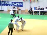 Combat de Kévin lors des shiai à Lyon le 22 Mars 2009 pour sa ceinture noire. Kévin est ceinture rouge, à droite du joséki.