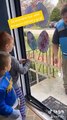 Il joue au morpion avec le livreur Amazon sur la porte vitrée de la maison !