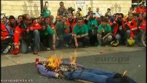 Imagenes de unas 300 personas, convocadas en Barcelona, por diferentes asociaciones, encabezadas por Democracia Nacional, se han concentrado en Barcelona para celebrar el homenaje a la bandera en el Día de la Hispanidad.