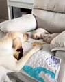 Cette chienne berce ses bébés chiots et les surveille. Émouvant !