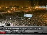 MIles de manifestantes molestos en El Cairo, tomaron la Plaza Tahrir, para exigir que se aceleren las reformas y el procesamiento de los antiguos altos cargos del Gobierno del presidente derrocado Hosni Mubarak acusados de corrupción. teleSUR