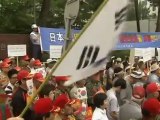 Demonstrators in South Korea hold a rally against Tokyo's boycott of Korean Air following the airline's test flight over islands disputed by the two nations. Simon Hanna reports.