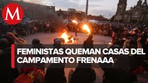 Feministas queman casas de campaña de FRENAAA