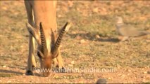 "wildlife around a Bishnoi village in Rajasthan. The Bishnoi care for wildlife and feed them, thus making the animals confident around human beings. The Chinkara (Gazella bennettii) is a species of gazelle found in south Asia. It lives in grasslands and desert areas in India, Bangladesh and parts of Iran and Pakistan. It is also known as the Indian Gazelle (Gazella gazella bennetti). It is a shy animal and avoids human habitation. It can go without water for long periods and can get sufficient fluids from plants and dew. Although most individuals are seen alone, they can sometimes be spotted in groups of up to four animals. This footage is part of the professionally-shot stock footage archive of Wilderness Films India Ltd., the largest collection of imagery from South Asia. The Wilderness Films India collection comprises of thousands of hours of high quality broadcast imagery, mostly shot on HDCAM 1080i High Definition, HDV and Digital Betacam. Write to us for licensing this footage on a broadcast format, for use in your production! We pride ourselves in bringing the best of India and South Asia to the world... wfi @ vsnl.com and admin@wildfilmsindia.com.