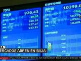 Los mercados asiáticos han abierto este jueves a la baja contagiados por el cierre en rojo de Wall Street y los rumores, desmentidos, sobre la situación de la banca francesa. El índice Nikkei de la Bolsa de Tokio se dejaba un 1,79% hasta situarse en los 8.880 puntos. Entre las bolsas que más caían: la de Seúl que a primera hora perdía cerca de un 4%. ... http://es.euronews.net/