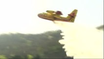 Des Canadairs écopent sur le Rhône, à proximité de Soyons, et partent en mission sur un incendie dans l'Ardèche.