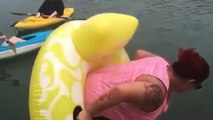 Cette mamie est en grosse galère avec sa bouée flamant rose... Ahaha la honte