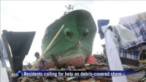 Ship stranded on Tacloban shoreline
