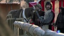 La peste asola la villa de San Felipe. Margarita ha comprobado que no tiene marcas en la piel, pero no puede mirarse la espalda. Gonzalo la ayuda en la tarea. Capítulo 39 (3x13). Cortesía de RTVE.