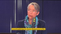 Laurent Wauquiez sur la PMA "C’est assez déconcertant de voir autant de mauvaise foi" réagit Elisabeth Borne "C'est assez révoltant d'entendre ces amalgames, que tout soit déformé, qu'on verse dans la caricature ça ne grandit pas le débat politique"