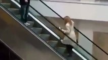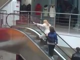 Une blonde monte les escalator à l'envers lol drole !!