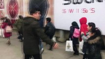 Küçük çocuk, yangın söndürme çalışması sırasında bidonla su taşıdı