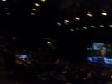 The scene prior the debate inside the Robinson Theater where the live feed from the adjacent Lazzara Hall was transmitted on the big screen.
