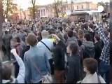 In Moscow's Pushkin Square, where a rally had been approved by the authorities, police moved in at the end to remove people.