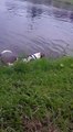 Un chien se baigne dans un étang et se fait surprendre par…