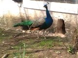 Les paons découvrent leur nouvelle volière