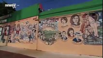 Eine amerikanische Flagge mit Präsident Obamas Gesicht wurde außerhalb eines lokalen Democratic Party Hauptsitzes in Florida nach Protesten heruntergenommen.