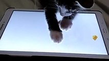 Serious "gamer" kitten chases mouse on tablet