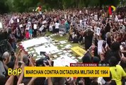 En Brasil, cientos de manifestantes repudian la celebración del golpe de Estado de 1964 frente a la sede del Club Militar en Río de Janeiro. teleSUR