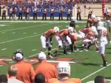 The team arrives at Royal Memorial Stadium and begins warming up for the 2012 season. David Ash and Case McCoy, Texas QBs, looked good and Jaxon Shipley looked great both passing and catching. The running backs are strong. Ricky Williams and Fozzy Whittaker both got honored at the game, Ricky with a statue and Foz with a trophy for his two hundred yard run backs last season. Hookem, baby.