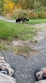 Black Fox Walks Around in Grass