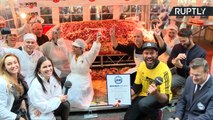 10 cooks were required to make the 2.5m long dish that weighed in at 1,198 kg, over twice that of the previous record, a doner kebab made in Dubai in 2009 at 468 kg.