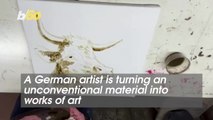 A New York watertower turned work of art by the artist Tom Fruin, he used 1000 pieces of colourful scrap plexiglas to create the art.