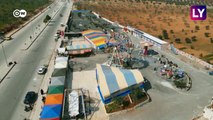 Syrian refugees flee to the Turkish border to escape an upsurge of violence on Wednesday.