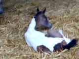 après 5 h de vis, la pouliche de Shiloh profite du box et de sa maman.après une naissance "pluvieuse" la miss est à l'abri .