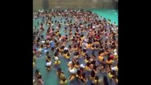 It's a pool that produces waves generated by electricity. Waves are about 10mins then repeated after a certain time. Aqua Park is more rides for children, adults too!
