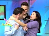 Vitola intenta besar a Hugo Santos, mientras él se resiste y se refugia en brazos de sus compañeros.